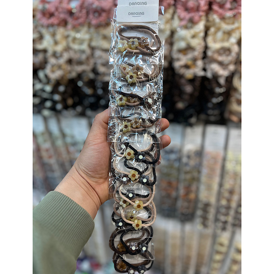 کش مو مدل زنانه پاکنی طرح لبخند کرم و قهوه ای ۲۰ عددی